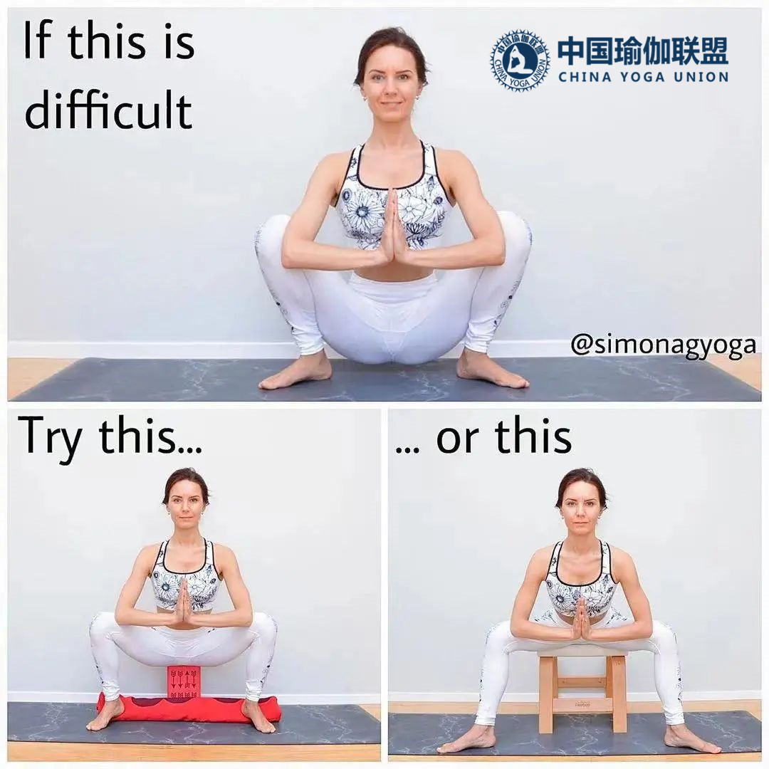 ◆ 蹲不稳怎么办呢?试试把瑜伽砖竖过来立在地上,然后坐在上面;