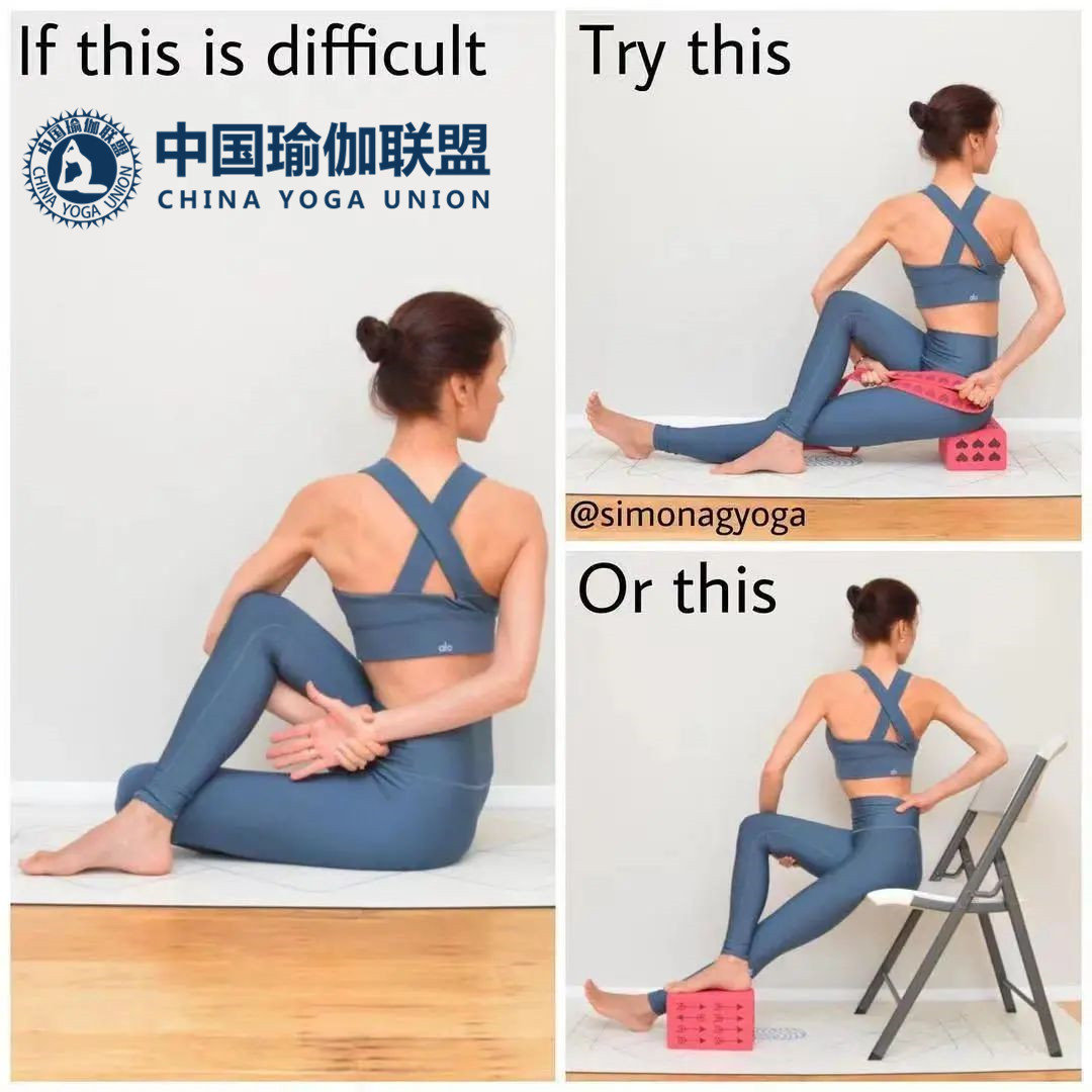 ◆ 还是觉得困难的话,那就先坐在高一些的瑜伽凳上辅助练习。