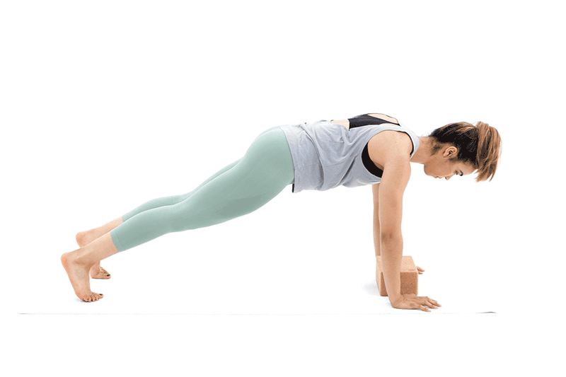 ◆ 配合呼吸,双脚交替向上踩瑜伽砖