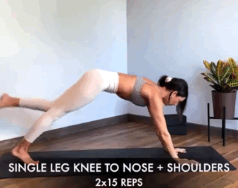 ◆ 呼气,腹部内收,屈左膝尽可能靠近胸口;